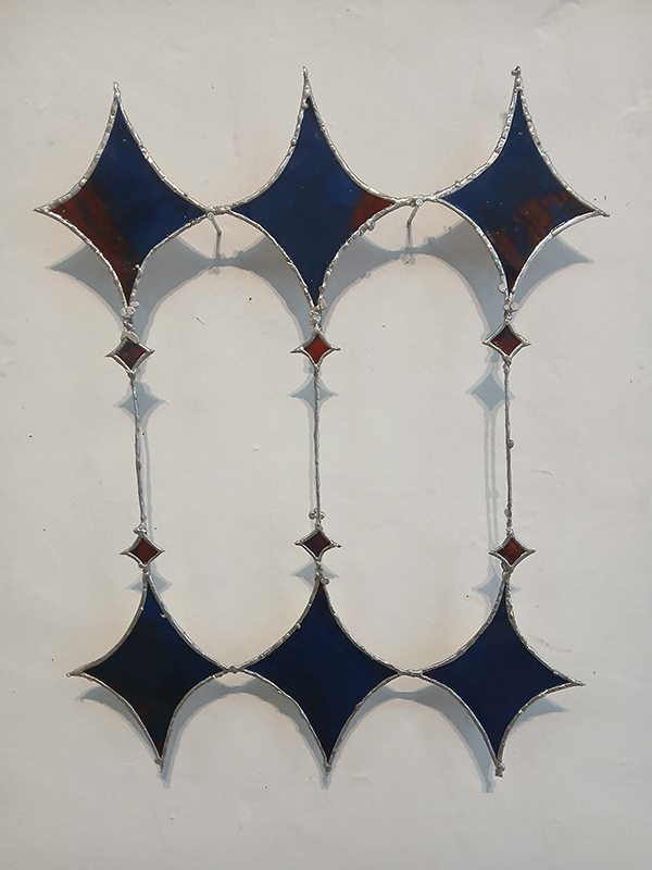 Au Zico House j’ai présenté le fruit de trois semaines de recherches artistiques sur le territoire libanais. En me plongeant dans la ville de Beyrouth, j’ai glané des motifs, formes ornementales d’architectures, des couleurs et des matières. J’ai travaillé la peinture et le vitrail, en utilisant notamment du verre coloré local dont l’utilisation courante dans les bâtiments de style ottoman a été une réelle source d’inspiration.